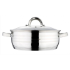 Fényes és matt kombinációjú, három szatén csíkkal díszített, rozsdamentes acélból készült edénycsalád tagja ez a lábos. Mérete: 26x10 cm, űrtartalma: 5 liter. Belső mérőskála található a lábosban. A hozzátartozó üvegfedőn szegecselt fogantyúk vannak. A szegecselt és a hidegen tartó fogantyúk biztonságossá teszik a főzést. Indukciós főzőlapon is használható! Mosogatógépben tisztítható.