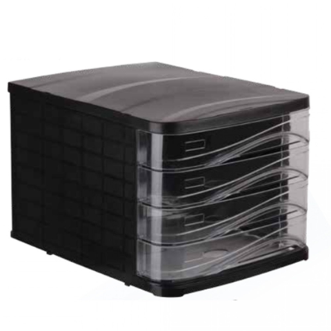 IRATTÁROLÓ MŰANYAG 4 FIÓKOS FEKETE, VÍZTISZTA FIÓKOKKAL Műanyag, kihúzható, áttetsző fiókos tárolók, fontos iratok védelmére. hosszúság: 380 mm szélesség: 290 mm magasság: 240 mm Katalóguskód: 967 Hiteles tájékoztatás: Elkötelezettek vagyunk termékei