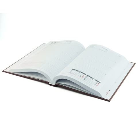 A/5 napi határidő napló, mely elegáns fehér papíron 2 színnyomással segít a napi teendők megtervezésében.
