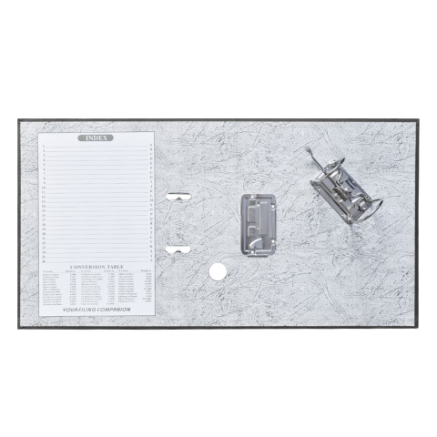 Emelőkaros iratrendező általános használatra. Kívül PP, belül fehér karton borítással, kihúzólyukkal. Cserélhető gerinccímke a feliratozáshoz. Tárolókapacitás 350 lap (A4 80gr.). A terméket lapra szerelve szállítjuk, a mellékelt emelőkaros szerkezet bepattintása gyors és egyszerű, 5 másodperc alatt elvégezhető és iratrendezőnk máris használatra kész! Katalóguskód: 12055 Hiteles tájékoztatás: Elkötelezettek vagyunk termékeink biztonságának garantál