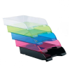 A4+ méretű dokumentumok, papírok tárolására alkalmas egymásra helyezhető kiváló minőségű, extra széles irattálca. A dokumentumok akár lefűzhető tasakban vagy gumis mappában is tárolhatóak a 26,5cm belső szélesség miatt. Anyaga rugalmas műanyag, így nem törik, nem reped. Egymásba csúsztatható, így szállítás közben nem sérül, biztonságosan szállítható.