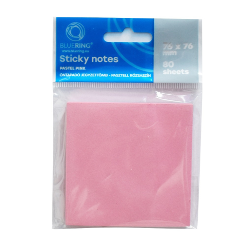 1 kép BLUERING Jegyzettömb öntapadó, 75x75mm, 80lap, Bluering® , pasztell rózsaszín