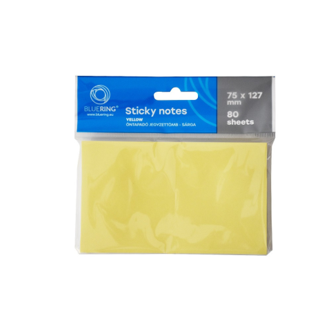 Jegyzettömb öntapadó, 76x127mm, 80lap, Bluering® , sárga - BR895660 - Öntapadó jegyzettömbök -