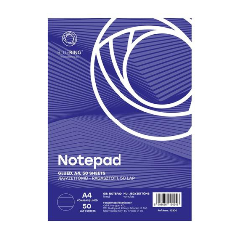 1 kép BLUERING Jegyzettömb ragasztott, A4, 50lap, Bluering® vonalas