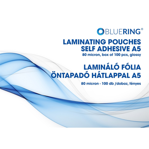 1 kép BLUERING Lamináló fólia A5, 80 micron öntapadó hátlappal 100 db/doboz, Bluering®,