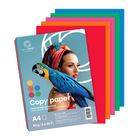 1 kép BLUERING Másolópapír, színes, vegyes színek A4, 80g Bluering® 5x20 ív/csomag, intenzív színes