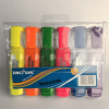 Speciális fluoreszkáló festékkel töltött szövegkiemelő. A kiemelt szöveg fénymásolható,faxolható. Klippel ellátott kupak, mely légmentesen zár. Festék színével megegyező kupak és testszín. Vágott csúccsal, 6 féle élénk szín a készletben. Vonalvastagság: 1