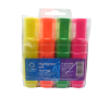 Speciális fluoreszkáló festékkel töltött szövegkiemelő. A kiemelt szöveg fénymásolható,faxolható. Klippel ellátott kupak, mely légmentesen zár. Festék színével megegyező kupak és testszín. Vágott csúccsal, 4 féle élénk szín a készletben.Vonalvastagság