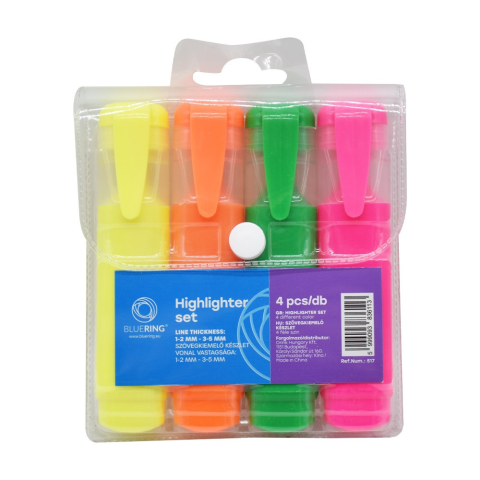 Teljes BLUERING Szövegkiemelő lapos testű készlet, Bluering®, 4 klf. szín termékleírás