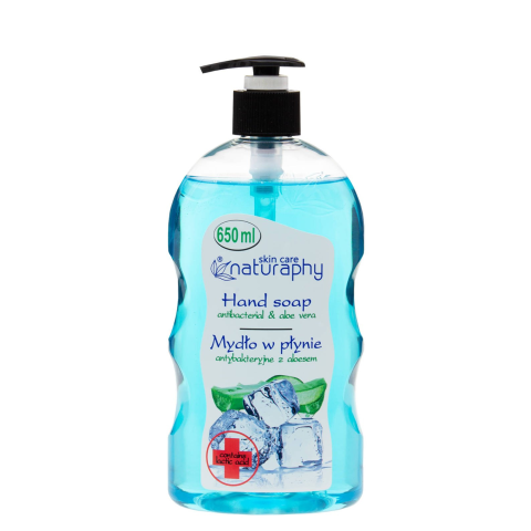 Folyékony szappan antibakteriális aloe vera Naturaphy 650 mlNaturaphy folyékony szappan kellemes aloe vera illattal antibakteriális hatásu 650 ml kiszerelésben. A szappan ideális bőrápoló. Alkalmas gyakori használatra és az adagoló pumpának köszönhetően egyszerűen adagolható. A szappan tejsavat tartalmaz, amely hidratál, nem szárítja és nem irritálja a bőrt. Használható munkahelyeken és othonában is. Használati útmutató: Nyomja meg az adagoló tetején találh