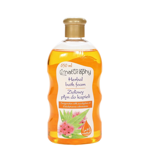 Habfürdő eukaliptuszolajjal Naturaphy 650 mlNaturaphy habfürdő kellemes eukaliptuszolaj illattal, 650 ml kiszerelésben. A kellemes kompozíció megnyugtat és ellazít. Selymessé és regeneráltá teszi a bőrt. A habfürdő PH semleges, gyengéden tisztítja a bőrt és megőrzi annak neutrális egyensúlyát.Használati útmutató:A habfürdőt elég a kádba folyó vízhez hozzáönteni.Összetétel:Aqua 7732-18-5 -%q.s. 100; Sodium Laureth Sulfate 68891-38-3 -%2,8; Sodium Chloride 7647