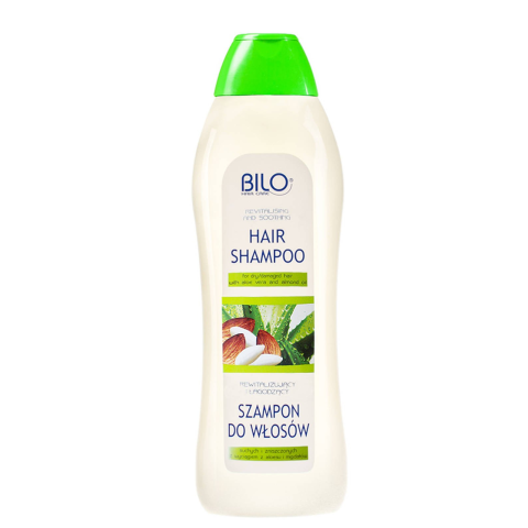 Hajsampon aloe vera kivonattal és mandulaolajjal BiLo 1000 mlA BiLo hajsampon kellemes aloe vera illattal és mandulaolajjal 1000 ml kiszerelésben. Száraz és sérült hajra használható. A hajat tisztára mossa, lágyítja és a fejbőrt is tisztán tartja. pH semleges, revitalizáló hatásu és frisseséget biztosít. Használati útmutató:A kézbe nyomjunk egy adag sampont, törüljük a vizes hajra, gyengéden dörzsöljük szét az egész fejbőrön majd bő vízben mossuk le. Össze