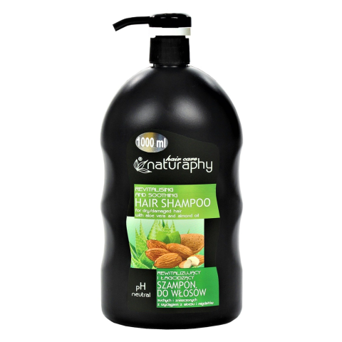 Hajsampon aloe vera kivonattal és mandulaolajjal Naturaphy 1000 mlA Naturaphy hajsampon kellemes aloe vera és mandulaolaj illattal 1000 ml kiszerelésben. Száraz és töredezett hajra használható. A hajat tisztára mossa, lágyítja és a fejbőrt is tisztán tartja. pH semleges, revitalizáló hatásu és frisseséget biztosít. Könnyen adagolható a flakon tetején található pumpának köszönhetően. Használati útmutató:A kézbe nyomjunk egy adag sampont, törüljük a vizes hajra,