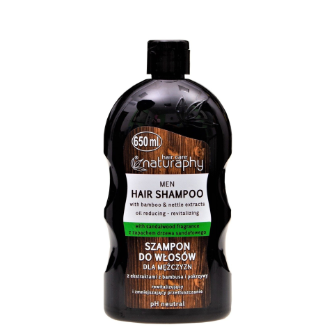 Hajsampon férfiaknak szantálfa Hair care Naturaphy 650 mlA Hair care Naturaphy hajsampon kellemes szantálfa, csalán és bambusz kivonattal 650 ml kiszerelésben. Normál és zsíros hajra használható. A hajat tisztára mossa, lágyítja és a fejbőrt is tisztán tartja. pH semleges, revitalizáló hatásu és frisseséget biztosít. Használati útmutató: A kézbe nyomjunk egy adag sampont, törüljük a vizes hajra, gyengéden dörzsöljük szét az egész fejbőrön majd bő vízben mo