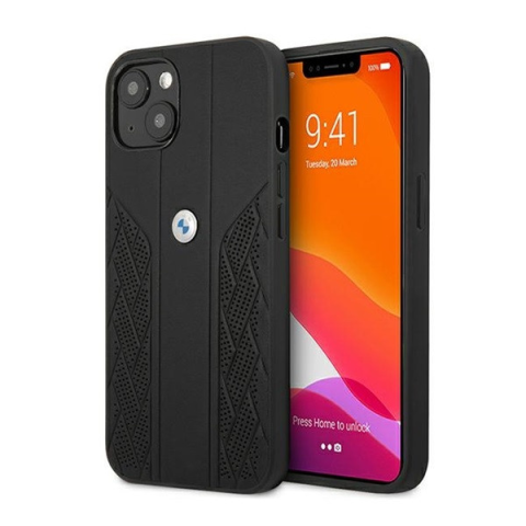 1 kép BMW Leather Curve Perforate Apple iPhone 13 mini hátlap tok, fekete