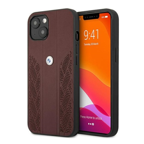 1 kép BMW Leather Curve Perforate Apple iPhone 13 mini hátlap tok, piros