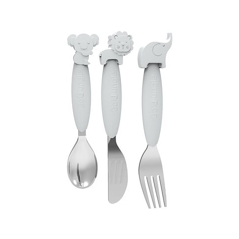 Gyerek evőeszköz - mosogatógépbe alkalmas, acél, szilikon markolat, kanál, villa és kés a csomagban, szürke színben Kisgyermeked már kanállal és villával eszik, de a felnőtt evőeszközök még mindig túl nagyok neki? Tedd élvezetessé számára az étkezéseket a Bo Jungle Grey evőeszközökkel, amelyek kifejezetten