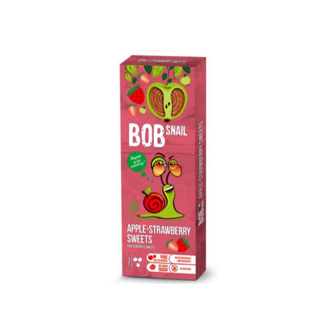 Bob Snail gyümölcstekercs alma-eper 30 g Alma 80%, eper 20%. Hozzáadott cukrot nem tartalmaz. Tartósítószer, színezék és adalékanyag mentes.