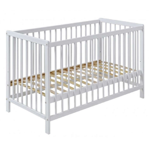 Bobas Magda Kiságy - 60x120 cm: Tökéletes választás babádnak 👶 Ez a gyönyörű fehér Bobas Magda kiságy praktikus és biztonságos megoldást kínál babád számára az első hónapokban. A három magassági fokozatnak köszönhetően könnyedén alkalmazkodhatsz bab...