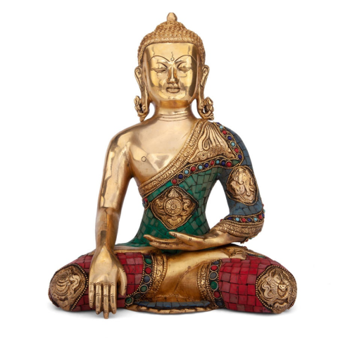 Ez a sokszínű Buddha figura gyönyörűen készült és igényesen díszített színes kövekkel. A 30 cm magas szobor kiválóan alkalmas jóga- vagy meditációs szoba oltárának, vagy elegáns és minőségi ajándéknak.