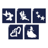 Jellemzői: 6 darab +1 body deco sablon. Összesen 7 darab sablon minta Sablon méret: A5 méretű lapon kb.7x7 cm - 6 db minta A lányok által kedvelt tündérek és angyal mintákkal. A sablon három rétegből áll, mely hennafestésre, arc és testfestésre, csillám