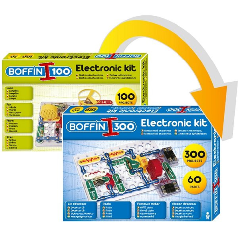 Építőjáték - elektronikus, 60 darabos készlet, anyaga műanyag, ajánlott 8 éves kortól, világító, hangeffektek, 100 projekt építéséhez, az összes funkció használatához 4 db AA elem szükséges A Boffin 100 elektronikus építőkészlet 60 alkatrészt tartalmaz, amelyekből olyan projekteket építhetsz, mint a Hazugságvizsgáló, Rádió, Vízriasztó, Nyomásmérő, Mozgásérzékelő, Ellenállásmérő, Hanghull