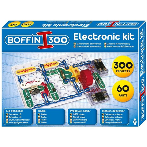 Építőjáték - elektronikus, 60 darabos készlet, anyaga műanyag és fém, ajánlott 8 éves kortól, világító, hangeffektek, 300 projekt építéséhez, az összes funkció használatához 4 db AA elem szükséges Kreatív elektronikus építőkészlet, a Boffin 300, amely fejleszti a gyerekek műszaki gondolkodását. Az alkatrészek problémamentesen kombinálhatók egymással. Ráadásul színkódoltak, ami megkönnyíti