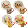 Családi szett háziállatos Termék adatai 4db bögre és 4db reggeliző tányér Anyaga: kerámia Szín:Színes mázalatti festék Bevonat: Károsanyag mentes,fényes máz. Készült: Égetéssel 1030 C-on Űrméret: 4 dl Tányér átmérő:19,5cm Mosogatógépben és mikróban is ha