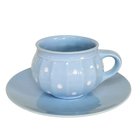 Termék adatai Csupor bögre és reggeliző tányér pasztel kék Anyaga: kerámia Szín: 1030C-on égetett mázzal bevonva. 4dl Tányér átmérője:19,5cm Bevonat: Károsanyag mentes,fényes máz. Készült: Égetéssel 1030 C-on Termék adatai Anyaga: kerámia Szín:Máz al