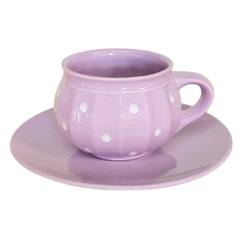 Termék adatai Csupor bögre és reggeliző tányér pasztel lila Anyaga: kerámia Szín: 1030C-on égetett mázzal bevonva. 4dl Tányér átmérője:19,5cm Bevonat: Károsanyag mentes,fényes máz. Készült: Égetéssel 1030 C-on Termék adatai Anyaga: kerámia Szín:Máz a