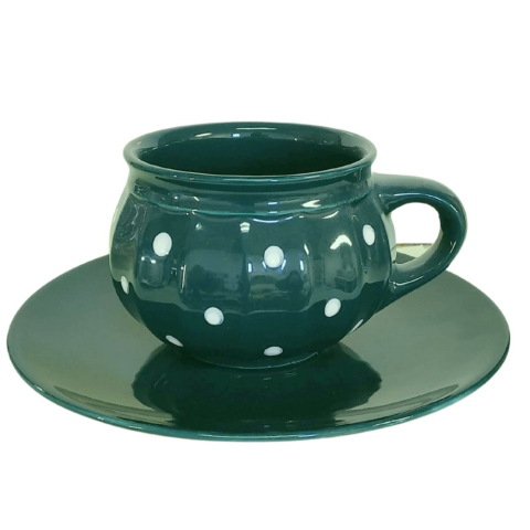 Termék adatai Csupor bögre és reggeliző tányér sötét zöld Anyaga: kerámia Szín: 1030C-on égetett mázzal bevonva. 4dl Tányér átmérője:19,5cm Bevonat: Károsanyag mentes,fényes máz. Készült: Égetéssel 1030 C-on Termék adatai Anyaga: kerámia Szín:Máz ala