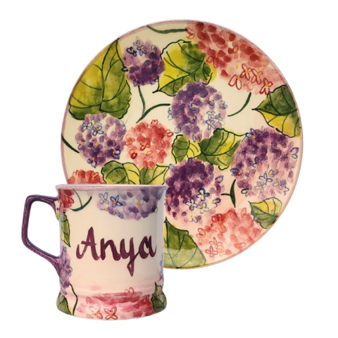 1 kép BögeManufaktúra Feliratos neves Hortenzia bögre és reggeliző tányér