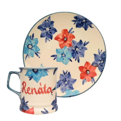 1 kép BögeManufaktúra Feliratos neves Kék virágos bögre és reggeliző tányér