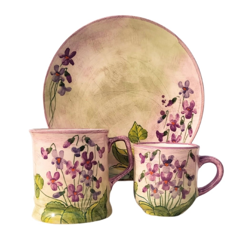 Tökéletes ajándék Anyáknapjára. Az ibolya, a hála és a hűség virága. Termék adatai Anyaga: kerámia Szín:Máz alatti festék, 1030C-on égetett mázzal bevonva. 2dl és 4 dl bögre Tányér átmérő:19,5 cm Bevonat: Károsanyag mentes,fényes máz. Készült: Égetés