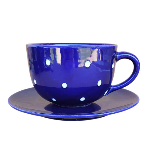 Jumbo bögre és reggeliző tányér Bevonat: Károsanyag mentes,fényes máz. Készült: Égetéssel 1030 C-on Űrméret: 6,5 dl Tányér átmérő:19,5 cm Mosogatógépben és mikróban is használható. Termék adatai Anyaga: kerámia Szín: sötét kék Bevonat: Károsanyag ment