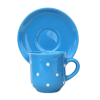 Világos kék alapon fehér pöttyös Kávés bögre Bevonat: Károsanyag mentes,fényes máz. Készült: Égetéssel 1030 C-on Űrméret: 2,0 dl Kistányér átmérő:13,5 cm Mosogatógépben és mikróban is használható. Termék adatai Anyaga: kerámia Szín: világos kék Bevona