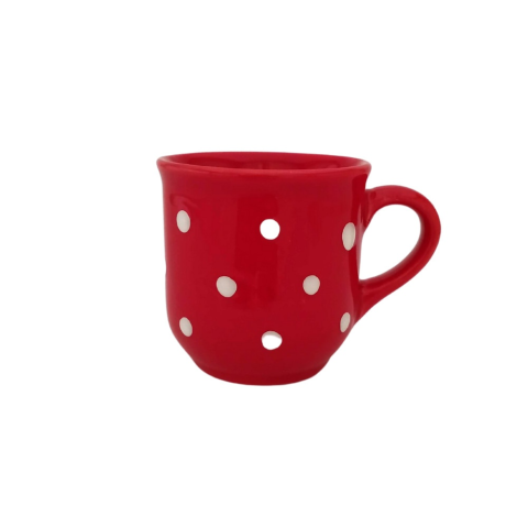 Meggy alapon fehér pöttyös Kávés bögre Termék adatai Anyaga: kerámia Szín: meggy Bevonat: Károsanyag mentes,fényes máz. Készült: Égetéssel 1030 C-on Űrméret: 2,0 dl Mosogatógépben és mikróban is használható. Termék adatai Anyaga: kerámia Szín: meggy Be