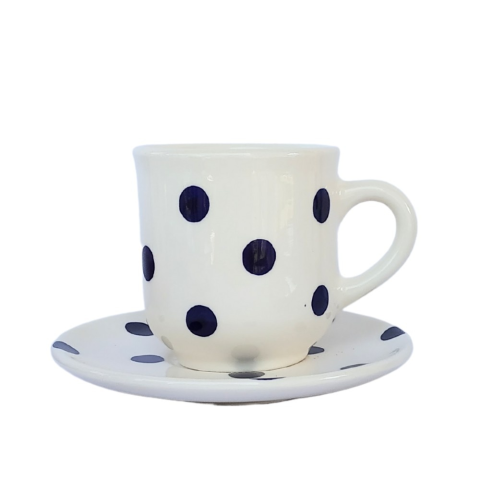 1 kép BögeManufaktúra Kék pöttyös kávés bögre és kistányér