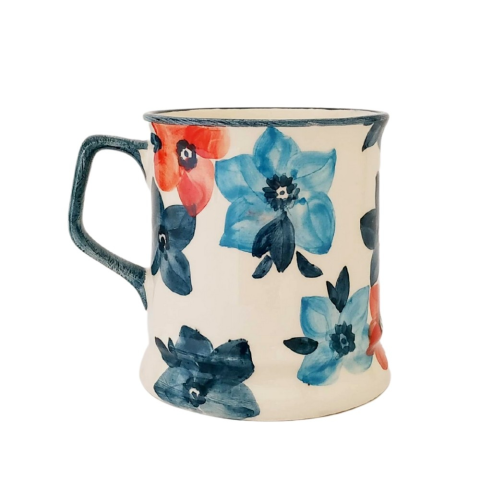 Élvezd a szünetet , élvezd a teát egy Kék virágos bögrével. Termék adatai Anyaga: kerámia Szín:Máz alatti festék, 1030C-on égetett mázzal bevonva. 4dl Bevonat: Károsanyag mentes,fényes máz. Készült: Égetéssel 1030 C-on Minden egyes darab egyedileg,kézz