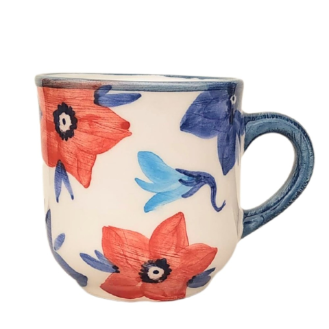 Élvezd a szünetet , élvezd a teát egy Kék virágos bögrével. Termék adatai Anyaga: kerámia Szín:Máz alatti festék, 1030C-on égetett mázzal bevonva. 2dl Bevonat: Károsanyag mentes,fényes máz. Készült: Égetéssel 1030 C-on Minden egyes darab egyedileg,kézz