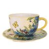 Termék adatai Kékek virágos jumbo bögre és reggeliző tányér Anyaga: kerámia Szín:Máz alatti festék, 1030C-on égetett mázzal bevonva. Bögre:4dl Tányér átmérő:19,5 cm Bevonat: Károsanyag mentes,fényes máz. Készült: Égetéssel 1030 C-on Termék adatai Any