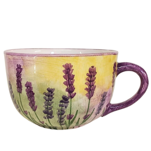 Termék adatai Levendulás jumbo bögre Anyaga: kerámia Szín:Máz alatti festék, 1030C-on égetett mázzal bevonva. 6,5dl Bevonat: Károsanyag mentes,fényes máz. Készült: Égetéssel 1030 C-on Termék adatai Anyaga: kerámia Szín:Máz alatti festék, 1030C-on ége