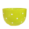 Neon zöld alapon fehér pöttyös Műzlis tál Termék adatai Anyaga: kerámia Szín: neon zöld Bevonat: Károsanyag mentes,fényes máz. Készült: Égetéssel 1030 C-on Űrméret: 6,5 dl Mosogatógépben és mikróban is használható. Termék adatai Anyaga: kerámia Szín: