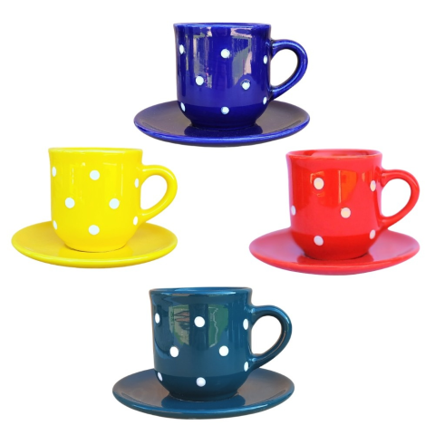 1 kép BögeManufaktúra Négyes színes kávéskészlet kistányérral
