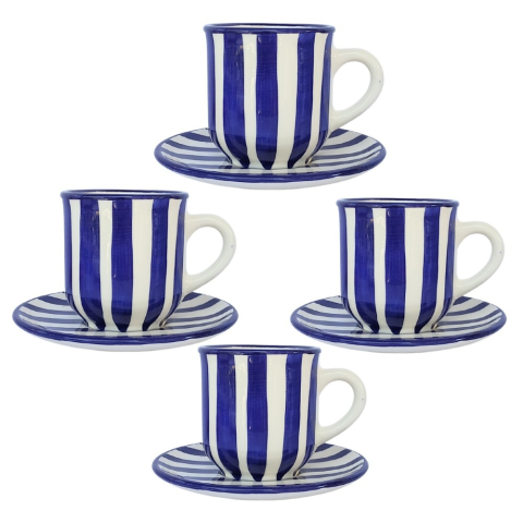 1 kép BögeManufaktúra Négyszemélyes kávés szett kék csíkos