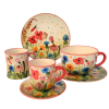 Pipacsmező reggeliző nagy szett Reggeliző tényér átmérő: 19,5 cm-2 db Jumbó bögre:6,5 dl-1 db Teás bögre:4 dl-1 db Kávés bögre:2 dl-1 db Kávés kistányér:13,5 cm-1 db Termék adatai Anyaga: kerámia Szín:Máz alatti festék, 1030C-on égetett mázzal bevon