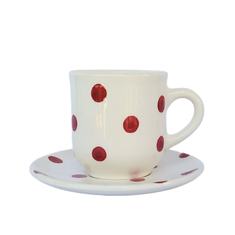 1 kép BögeManufaktúra Piros pöttyös kávés bögre és kistányér