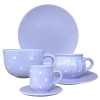 Reggeliző nagy szett 6 részes Bevonat: Károsanyag mentes,fényes máz. Készült: Égetéssel 1030 C-on Űrméret:2dl, 4dl 6,5dl Tányér átmérő:19,5 cm Mosogatógépben és mikróban is használható. Termék adatai Anyaga: kerámia Szín: pasztel lila Bevonat: Károsan