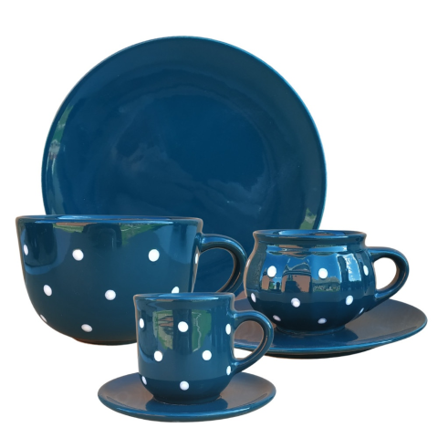 Reggeliző nagy szett 6 részes Bevonat: Károsanyag mentes,fényes máz. Készült: Égetéssel 1030 C-on Űrméret: 2dl, 4 dl, 6,5 dl Tányér átmérő:19,5 cm Mosogatógépben és mikróban is használható. Termék adatai Anyaga: kerámia Szín: sötét zöld Bevonat: Káros
