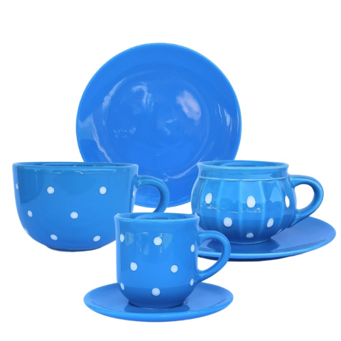 Reggeliző nagy szett 6 részes világoskék Termék adatai Anyaga: kerámia Szín:világoskék Bevonat: Károsanyag mentes,fényes máz. Készült: Égetéssel 1030 C-on Űrméret: 6,5 dl Mosogatógépben és mikróban is használható. Termék adatai Anyaga: kerámia Szín:
